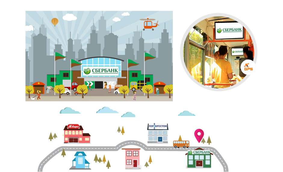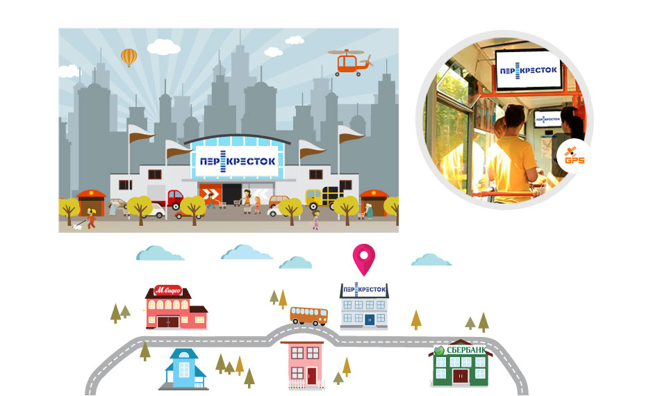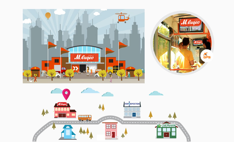 Например, подъезжая к остановкам в радиусе одного километра от магазина бытовой техники в рекламный блок включается трансляция ролика о глобальной распродаже, которая проходит конкретно в этом магазине.