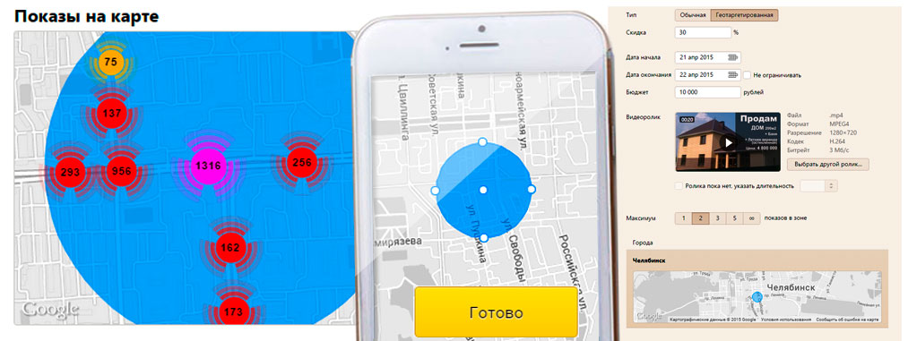 Возможность адресовать показ ролика в непосредственной близости от точек реализации рекламируемого товара или услуги